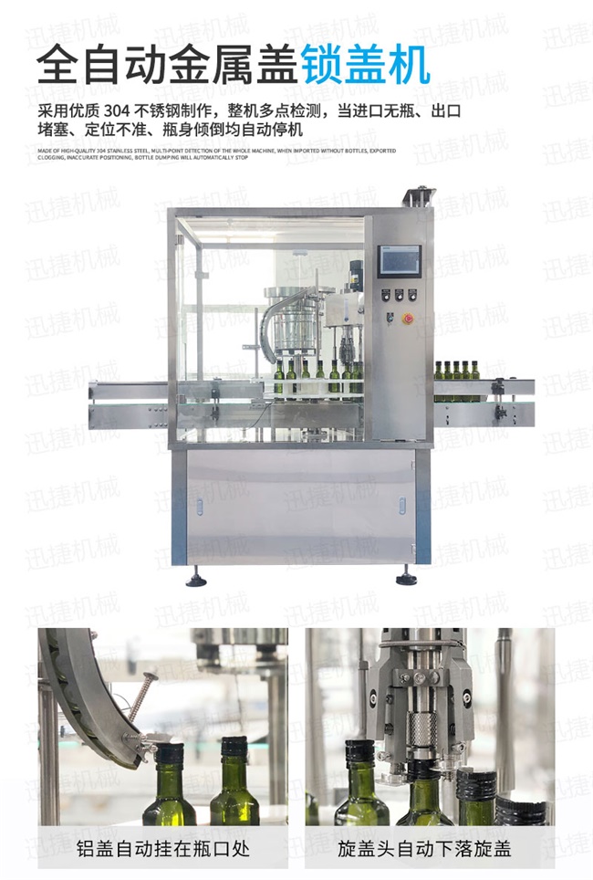 5、整機多點檢測,當進口無瓶、出口堵塞、定位不準、瓶身傾倒均自動停機。