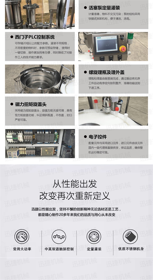 6、采用磁力扭矩旋蓋頭,旋蓋力矩?zé)o級(jí)可調(diào),具有恒力矩旋蓋功能,糾正傾斜瓶蓋,不傷蓋,封口嚴(yán)密可靠;