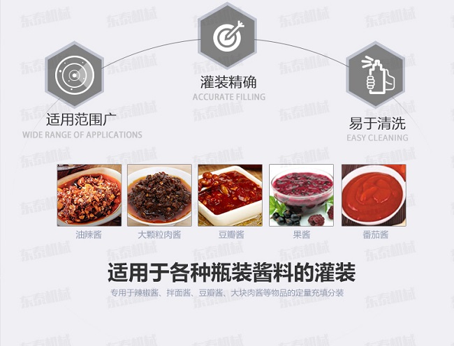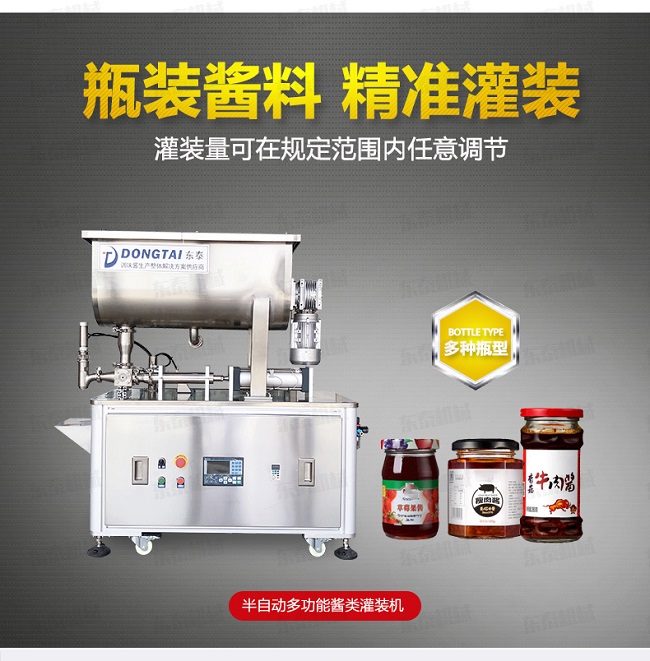 辣椒醬灌裝機(jī)是由我公司自主研發(fā),臥式攪拌,可以很好的解決大顆粒物料灌裝過程中油料分離過快而導(dǎo)致的灌裝誤差大等難題。主要適用于粘稠醬料,如麻辣醬、香辣醬、牛肉醬、豆辨醬、黃豆醬、豆豉醬等醬料產(chǎn)品。在包裝過程中,海鮮醬灌裝機(jī)可以實(shí)現(xiàn)產(chǎn)品從原料進(jìn)入到包裝機(jī)械開始,經(jīng)過一些列生產(chǎn)活動構(gòu)成的路線,從而達(dá)到無人化自動包裝。如果您有需要,可以和我們聯(lián)系